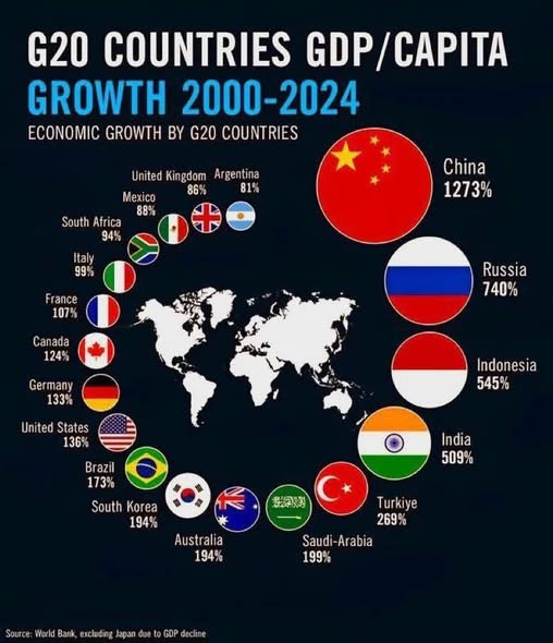 Figures from the World Bank clearly show where the world is heading. While China has seen GDP growth of 1273% since 2000, the US can only boast growth of 136% in comparison, roughly one tenth! Russia has seen GDP growth of 740% since 2000, a figure that demonstrates the wisdom of throwing Western economic advisors out the door.